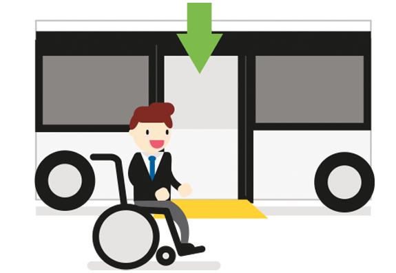 Si vas en silla de ruedas, acceder por la rampa habilitada en la puerta trasera.